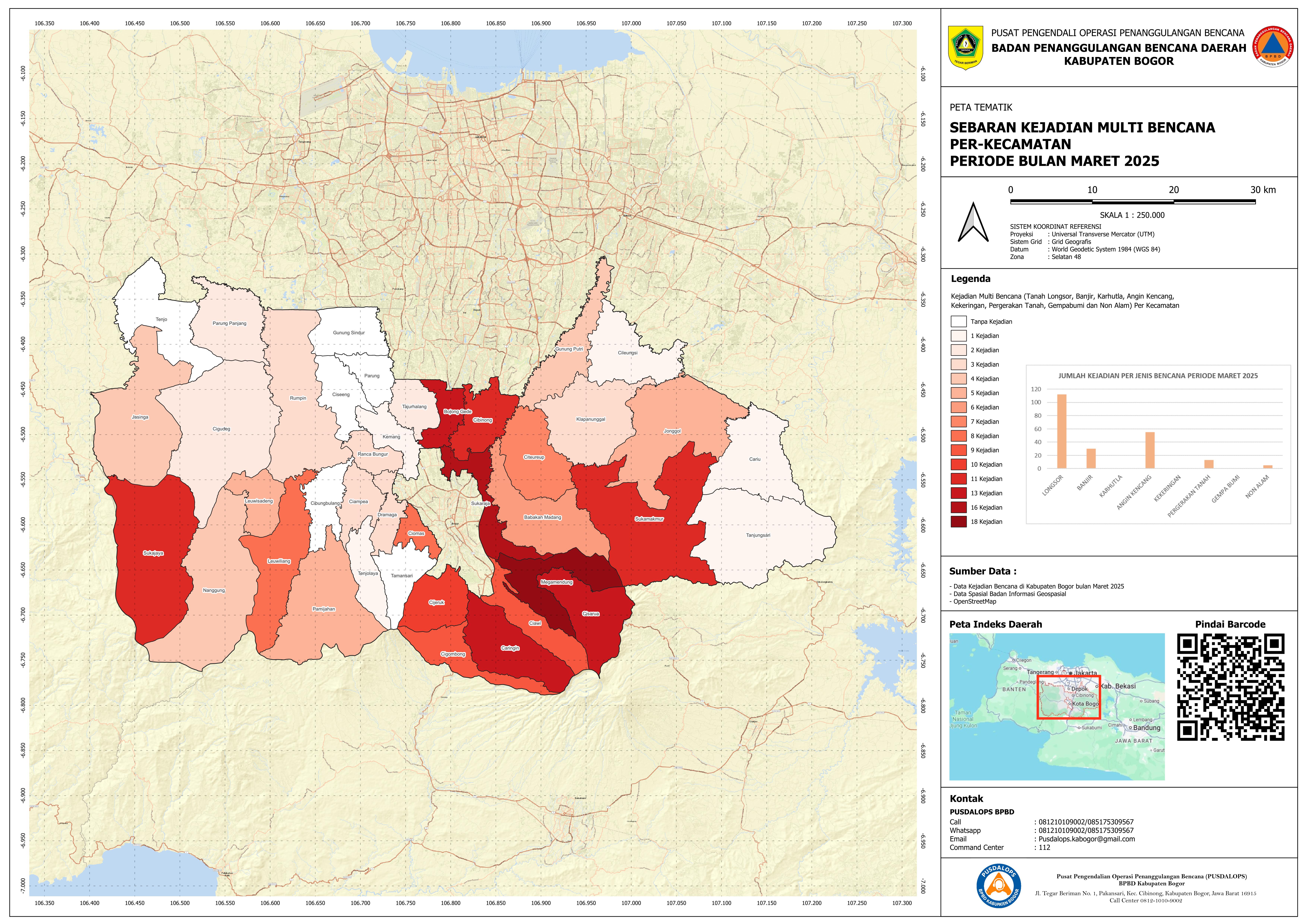 PETA SEBARAN BENCANA KABUPATEN BOGOR BULAN MARET TAHUN 2025