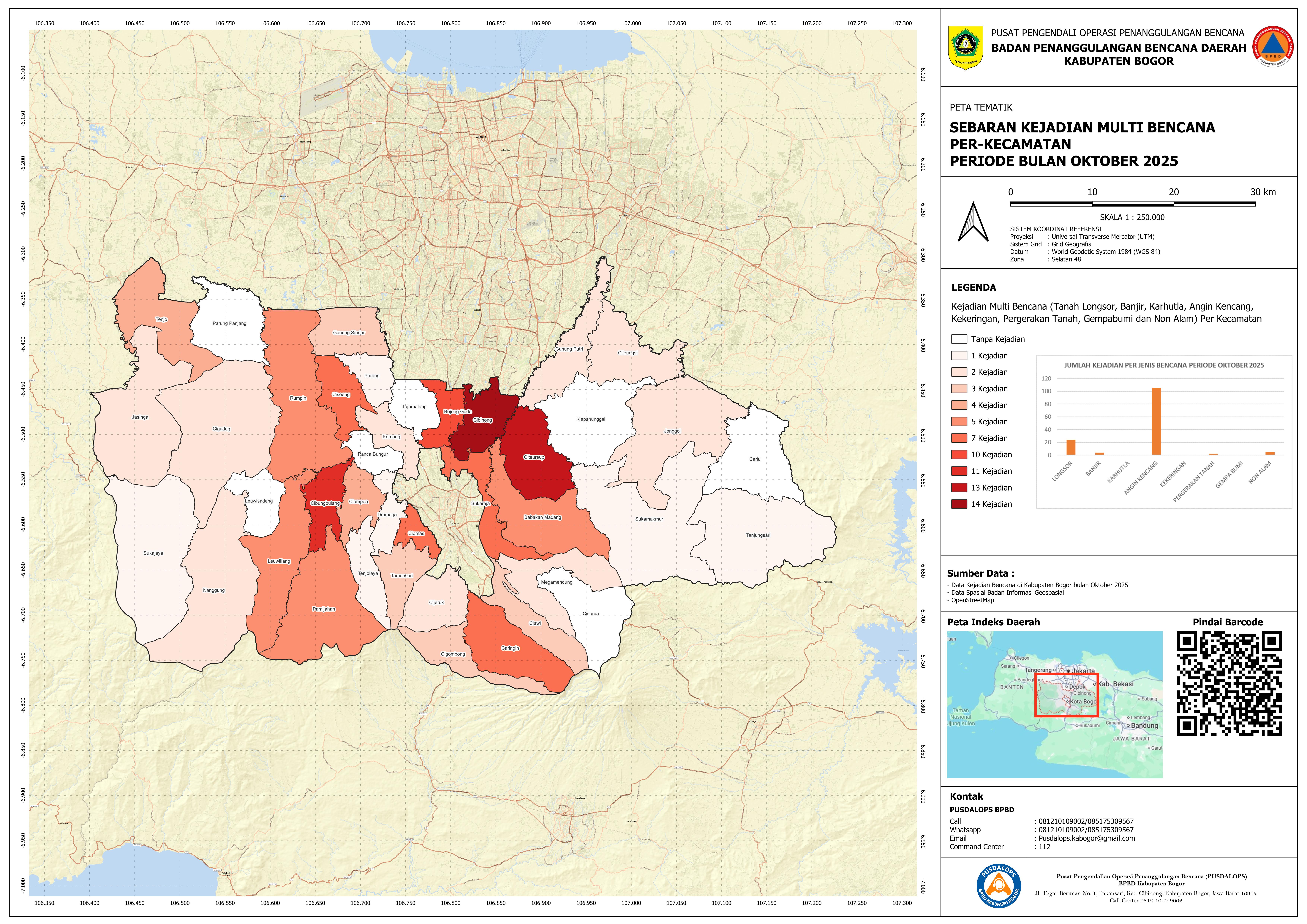 PETA SEBARAN BENCANA KABUPATEN BOGOR BULAN OKTOBER TAHUN 2025